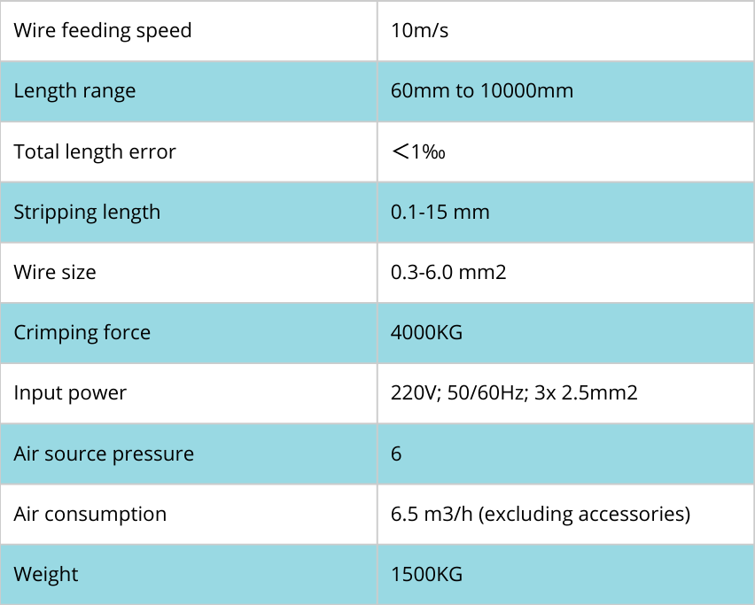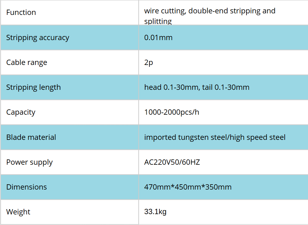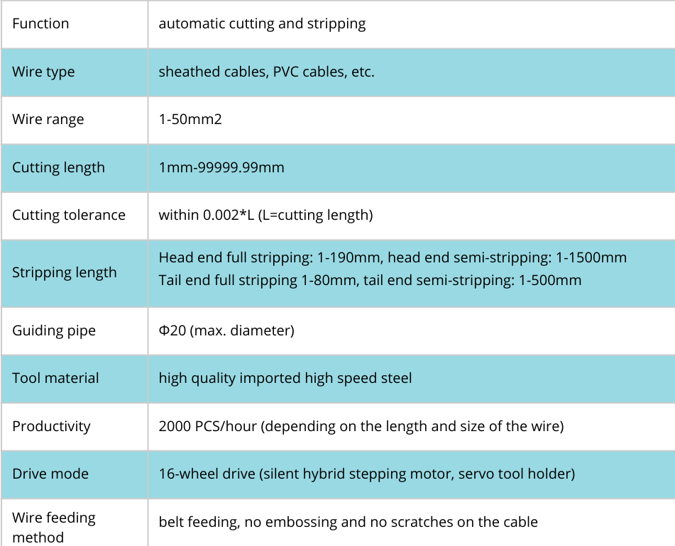 • Head end full stripping: 1-190mm, head end semi-stripping: 1-1500mm